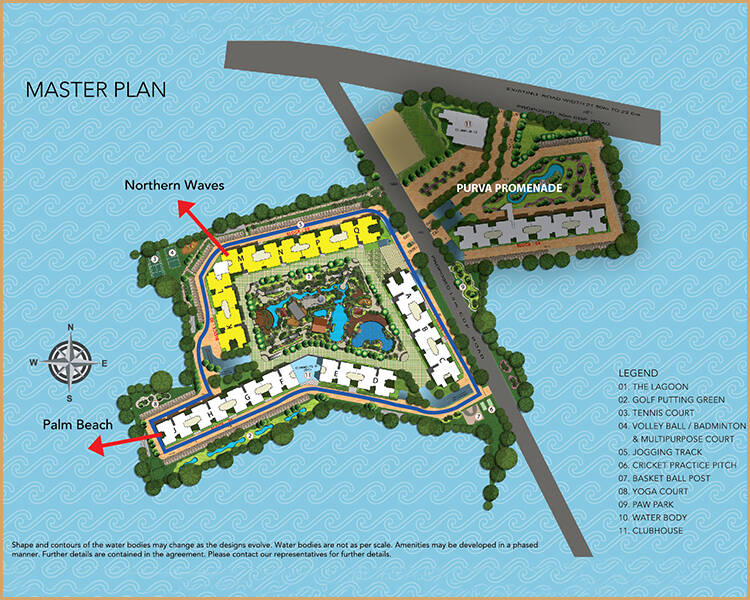 Purva Promenade aims to provide residents with a luxurious and tranquil living experience. The apartment complex consists of four towers with ten floors each, ensuring ample natural lighting and ventilation. With its range of amenities and well-designed living spaces, Purva Promenade offers a perfect balance between modern luxury and a marine-themed outdoor environment.